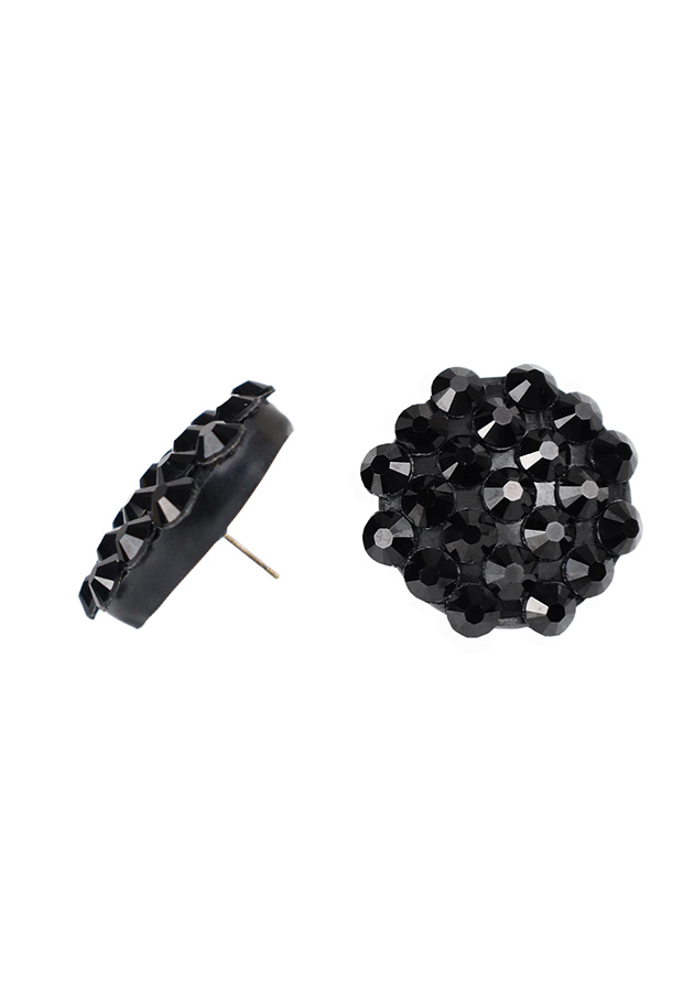 Plain Large Round Earrings w/ Clear Crystals in Black