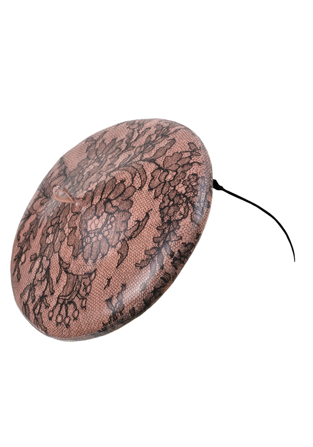 Printed Beret w/ Reverse Filigree Trim in Semi-Trans Lilac Lace / Supatex Black