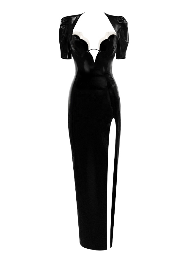 Plain/Plain Double Tulip Cup Puff Sleeve Evening Dress w/ Contrast Cup in Supatex Black / Supatex White