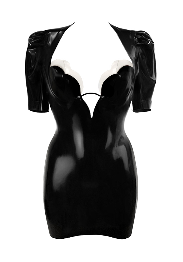 Plain Double Tulip Cup Puff Sleeve Mini Dress w/ Contrast Cup in Black / White