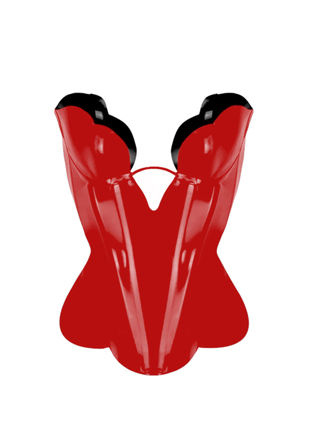 Plain Double Tulip Cup Corset w/ Scallop Hem / Contrast Cup in Red / Black