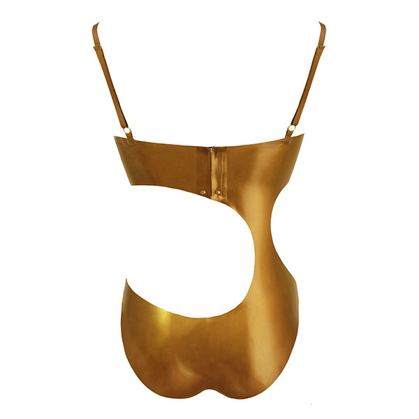 This extraordinary bodysuit features a revealing asymmetric cut out design to accentuate the waist and create alluring curves.
